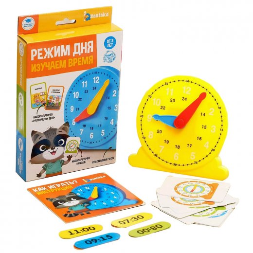 Купить развивающий набор "Режим дня. Изучаем время" в Новосибирске Вы можете в магазине развивающих и настольных игр "Игры Почемучек".