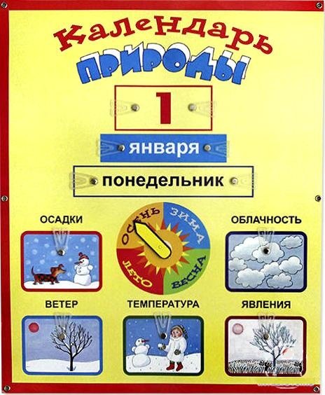 Некоторые наблюдения вы не сможете совершить на прогулке. Например, вам вряд ли удастся показать малышу спящего в берлоге медведя. Но можно прочесть об этом в книге или просто рассказать и вставить в календарь соответствующую карточку. На втором листе календаря заполняются число, месяц, день недели, время года. Заполняя календарь, беседуйте с ребенком, рассказывайте ему о временах года, месяцах, погодных явлениях, о живой природе. Или, если ребенок уже многое знает, задавайте вопросы ему. Можно организовать игры с календарем. Например, заполнить окошки неправильно (вставить картинки, несоответствующие времени года или погоде на сегодняшний день) и попросить ребенка исправить ошибки.
