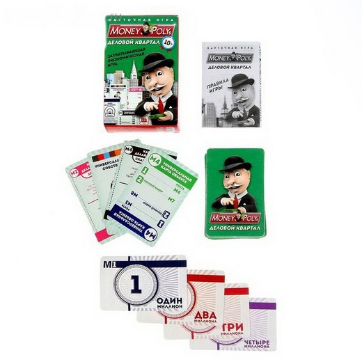 Деловой квартал — это место, где возможно всё! У вас на руках будут карты с самими разными активами от той или иной собственности до специальных сделок. Вы можете разыграть любую из них и полностью изменить ход игры. Соберите три комплекта собственности одного цвета быстрее других, и вы станете победителем!