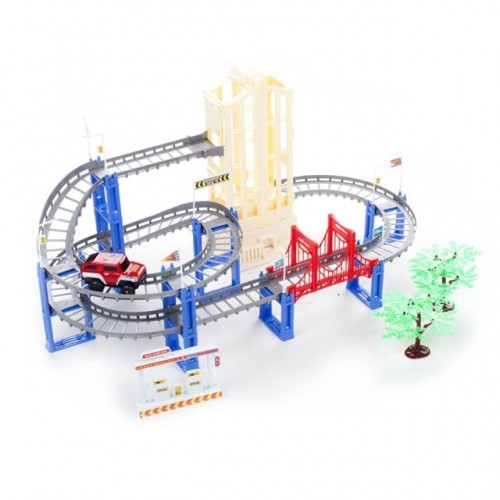 Поднять машинку на верхние этажи можно с помощью лифта, при этом заиграет музыка и загорятся огоньки. При желании звуковой эффект в лифте можно отключить. Для спуска имеются круговые или прямые эстакады. Каждый артикул подходит к другому, можно все время менять конфигурацию, дополнять новыми элементами, устанавливать многоэтажный эстакады, открывая множество новых игровых возможностей. Развивает: воображение, логику и внимание.