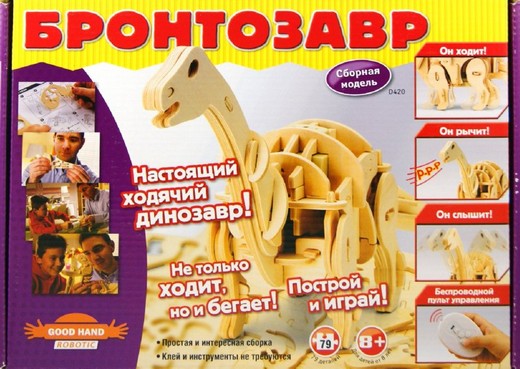Бронтозавр - один из крупнейших травоядных динозавров, его длинна могла достигать 23 метров, а вес 40 тонны. Большое и длинное туловище, увенчивалось не мение длинной шеей, что позволяло бронтозавру доставать до самых высоких листьев на деревьях. Данный конструктор позволит ребенку почувствовать себя настоящим ученым – и получить в результате настоящего робота! В состав набора входят несколько деревянных листов фанеры с деталями, различные датчики, моторчики и пульт дистанционного управления.