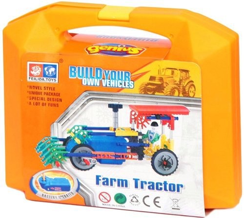 Не секрет, что особой любовью у детей пользуются те игрушки, в изготовлении которых они принимали непосредственное участие. В ярком оранжевом чемоданчике юные инженеры найдут 103 детали для создания модели трактора с электромотором. Для сюжетно-ролевых игр в комплекте есть модель человечка. Цветная схема подскажет ребятам последовательность сборки деталей. Маленьким конструкторам предстоит соединить разнообразные цветные элементы таким образом, чтобы электрический мотор из комплекта мог приводить в движение передние колеса.