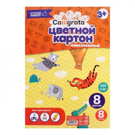 Купить Картон цветной А4, 8 листов, 8 цветов, Calligrata, немелованный в Новосибирске Вы можете в магазине развивающих и настольных игр "Игры Почемучек".
