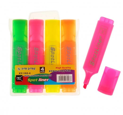 Набор маркеров-текстовыделителей, 4 цвета, 5 мм поможет вам с работой любой сложности. Его специальный клиновидный наконечник удобно выделяет нужную строку машинописного текста по всей ширине. Этот маркер подходит для всех видов бумаги и не выцветает со временем.