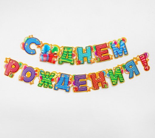 Гирлянда — прекрасный аксессуар для украшения комнаты или зала! Он станет отличным дополнением любого праздника. Буквы скреплены с помощью люверсов, что позволяет свободно трансформировать гирлянду. На лицевой стороне напечатана красочная надпись. Аксессуар легко крепится на стену или дверной проём с помощью клейкой ленты или кнопок.