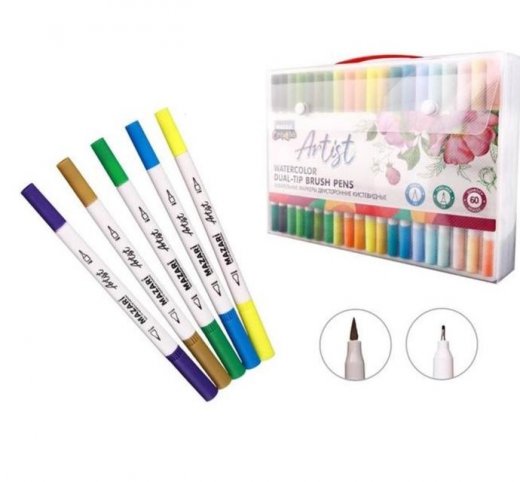 Набор акварельных маркеров двусторонних кистевидных 60 шт
