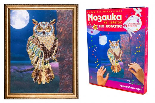 Мозаика из пайеток на холсте Сова