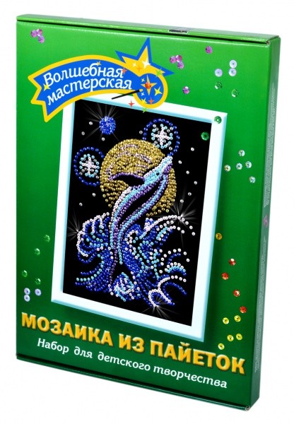 Купить Мозаику из пайеток Лунный дельфин в Новосибирске Вы можете в магазине настольных и развивающих игр "Игры Почемучек".Добавить отзыв
