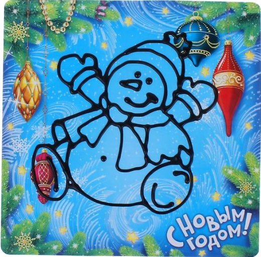 На основу уже нанесены контуры из специального материала. Заполняйте каждый элемент аппликации подходящим по цвету пластилином. Готовую картинку стоит оставить сохнуть на 4-5 часов. А после этого начинается самое интересное! Когда вы отделяете аппликацию от основы, ее можно приклеить на любую стеклянную или гладкую поверхность! Это может быть окно, зеркало или просто поверхность стола. Витражная аппликация шариковым пластилином "Снеговик" станет замечательным украшением вашего дома, а также превосходным подарком на Новый Год! Наслаждайтесь неповторимыми счастливыми моментами совместного творчества в новогодние праздники!