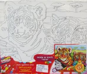 крупным изображением тигров. Яркие акриловые краски легко ложатся на