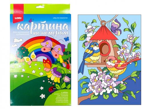Купить Картину по номерам Lori Весенние птички 20х28,5 см в Новосибирске Вы можете в магазине развивающих и настольных игр "Игры Почемучек"