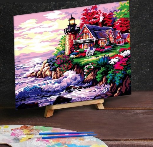 Купить Картину по номерам Дом с маяком у моря 40х50 см в Новосибирске Вы можете в магазине развивающих и настольных игр "Игры Почемучек"