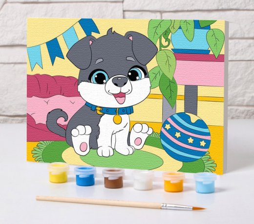 Купить Картину по номерам Песик 21х15 см в Новосибирске Вы можете в магазине развивающих и настольных игр "Игры Почемучек"