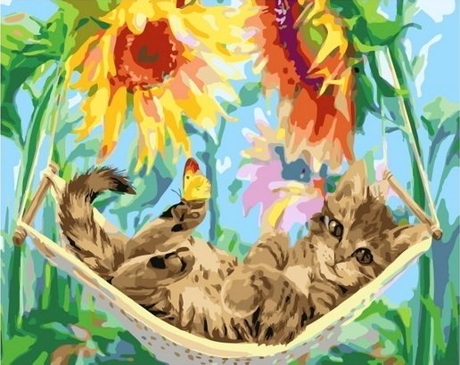 Купить Картину по номерам Котенок в гамаке 40*50 см в Новосибирске Вы можете в магазине развивающих и настольных игр "Игры Почемучек"