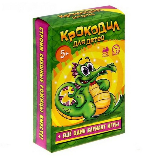 Настольная игра Крокодил для детей - эта весёлая игра мигом поднимет настроение детской компании! Ведь в ней нужно объяснять слова так, чтобы все поняли, что вы изображаете. А сделать это вам предстоит с помощью мимики и жестов, поэтому каждый сможет погримасничать вдоволь! Скорее зовите друзей и познакомьтесь с весёлым «Крокодилом для детей»!