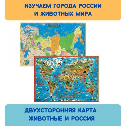 Купить Двусторонняя карта. Животные и РФ детская в Новосибирске Вы можете в магазине развивающих и настольных игр "Игры Почемучек".