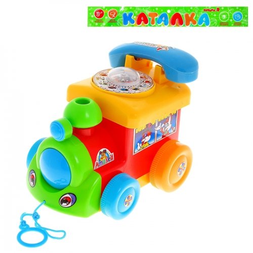Купить каталку "Паровоз с телефоном на веревке" в Новосибирске Вы можете в магазине развивающих и настольных игр "Игры Почемучек".