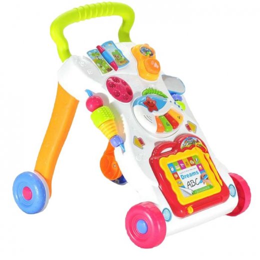 Игровая панель разработана для того, чтобы помочь малышу сделать первые шаги. Ребёнок может держаться за ручку и идти, толкая каталку перед собой.