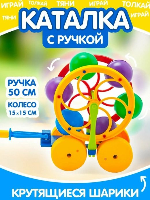 Каталка детская с ручкой - это классическая забава для развития навыков ходьбы, координации и устойчивости у малышей, которые уже научились ходить или только начали предпринимать попытки. Каталка колесо привлечет внимание любого ребенка и заинтересует на продолжительный период времени, с огромной пользой во время игры. Игрушка каталка для мальчиков и девоочек имеет шарик внутри колеса, который при движении увлекательно звенит. С помощью каталки ребенок учится связывать движения предметов с собственной активностью. Кроме улучшения координации, каталка для малышей способствует развитию наглядно-действенного мышления ребенка и знакомит с понятиями вперед-назад и влево-вправо. Детские игрушки от бренда Каролина - это отличный подарок малышам на день рождения, на новый год, на выписку, на крестины, на годик, на 2 года, на 3 года, 4 года. Развивающая игрушка предназначена для детей от 1 года, станет любимым другом вашего малыша, неизменно сопровождая и развлекая его дома или на улице.