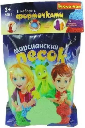 Прекрасный игровой набор "Марсианский песок" от бренда Bondibon позволит скрасить игру малыша в песочнице. В комплекте представлены формочки для изготовления разнообразных фигурок, а также пятьсот граммов зеленого песка, который не прилипает к рукам. Песок легко поддается в процессе лепки, поэтому ребенок сможет сделать аккуратные и красивые фигурки с его помощью.