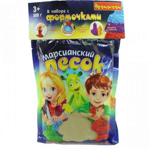 Набор "Марсианский песок" состоит из 500 граммов бежевого песка и 5 пластиковых формочек. Песок приятный на ощуп, пластичный, хорошо держит форму, не прилипает к рукам, С этим интересным набором вы можете устроить песочницу прямо у себя дома, а ваш ребёнок получит возможность лепить потрясающие фигурки с помощью формочек, входящих в комплект, и в любое время года наслаждаться игрй.
