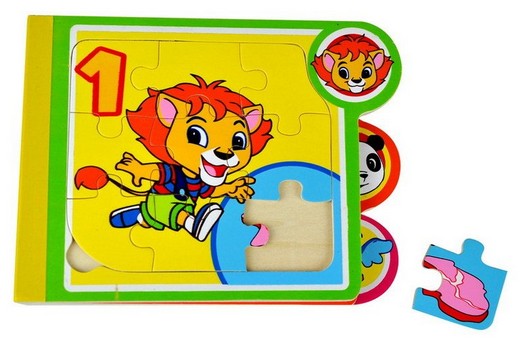 В каждой книжке - 6 пазлов из 9 элементов каждый. Собранный пазл плотно вписывается в рамку - страничку и не выпадает при перелистывании.