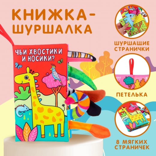 Занимательная мягкая книжка игрушка станет первой любимой мягкой книгой для малыша. Ваш малыш будет с удовольствием шуршать и изучать не только картинки и представителей мира животных, но и развивать мелкую моторику рук, ведь это еще и шуршащая игрушка, мягкая игрушка. В этом вам помогут милые и яркие герои, подвижные и шуршащие элементы.