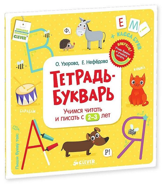 «Тетрадь-букварь. Учимся читать и писать с 2-3 лет» - новое издание основанное на эффективной методике обучения чтению и письму, разработанной известными педагогами О.В. Узоровой и Е.А. Нефёдовой. В этой книге вы найдете разрезную кассу букв с помощью которой вы сможете вырезать буквы и знаки препинания.