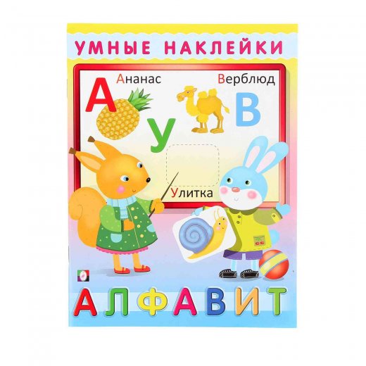 Умные наклейки "Алфавит" - познавательная книжка с крупными правдоподобными изображениями предметов, животных, овощей, фруктов и ягод, в названии которых присутствует буква. Хорошо подходит для знакомства малышей с буквами алфавита.