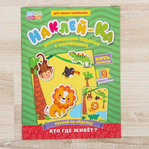 Купить развивающие задания с наклейками "Кто где живет?" в Новосибирске Вы можете в магазине развивающих и настольных игр "Игры Почемучек".