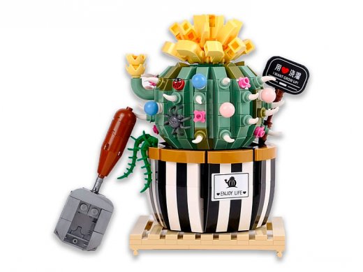 Конструктор LOZ „Кактус в горшочке“ (1246_MK) — настоящий восторг для ботаников от 8 лет и старше. С таким удивительным сортом кактусов вам вряд ли приходилось встречаться! Посмотрите, как он похож на нарядный чайничек, усевшийся в горшок. Великолепный цветок, венчающий растение так хорош, что до него пытаются добраться и паучок, и божья коровка. Конечно, такая красота требует ухода. Поэтому из 721 детали набора вы сможете собрать еще и маленькую лопатку, чтобы пересаживать растение. В собранном виде установленный на подставку кактус имеет размеры 10 см в ширину, 7,5 см в глубину, 12 см в высоту и станет превосходным украшением для любого интерьера.