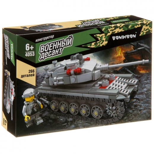 - Конструктор Bondibon Военный Десант Танк 266 дет