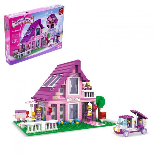Из 576 элементов юная леди сконструирует коттедж, автомобиль, обустроит площадку вокруг дома, посадит цветы, установит столик для пикника и почтовый ящик, а также огородит участок заборчиком.