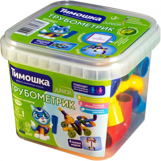 Простой, но при этом интересный конструктор "Трубометрик" является одним из помощников в развитии мелкой моторики и пространственного мышления, также поможет и развитию фантазии малышей. Множество деталей разного цвета и направленности помогут соорудить как плоские, так и объемные конструкции. В лабиринтах "Трубометрика", можно разворачивать боевые действия, прятать сокровища в тайных ходах, строить различные сооружения. А с помощью имеющихся в наборе колес, можно конструировать различные машины.