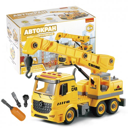 - Машинка-конструктор с отверткой Автокран 71 дет