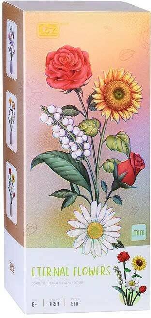 Лучшая игрушка для ребенка - это та, которая развивает его способности и увлекает надолго. Блочный конструктор LOZ из мини блоков (размеры 4х4 мм) - это трехмерная фигура. Благодаря сборке конструктора развивается не только мелкая моторика, но и мышление пространственное, творческое, сообразительность, память и ловкость. Во время игры с конструктором ребенок учится усидчивости и аккуратности, улучшается координация его движений и расширяется кругозор.Данный букет включает в себя - две прекрасные розы (уже распустившаяся, высотой 31,5 см.) и в бутоне, подсолнух, а также веточку ландыша и самый летний цветок - ромашку.