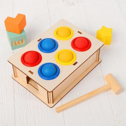 Купить "Стучалка деревянная 6 отверстий" в Новосибирске Вы можете в магазине развивающих и настольных игр "Игры Почемучек".