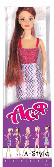 Кукла Ася в платье с принтом А-стайл, непременно, понравится всем поклонницам Барби, а ее цена приятно удивит родителей. Ася самая настоящая модница, она просто обожает стильно выглядеть, и это ей всегда удается. У куклы потрясающий необычный цвет волос, легкий не вызывающий макияж и великолепный наряд. Одета она в розовое платье с блестящим лифом на тонких бретелях, а низ платья выполнен с потрясающим зигзагообразным принтом. Весь образ дополняют удобные нежно-розовые босоножки на каблуке.