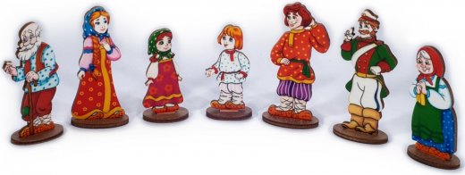 Фигурки выполнены из фанеры, окрашены с двух сторон. Краска нанесена непосредственно на дерево (не пленка), что делает рисунок долговечным. Такие фигурки можно использовать в различных сюжетных играх, при инсценировке сказок.