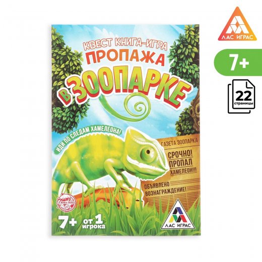 Купить квест книга игра "Пропажа в Зоопарке" в Новосибирске Вы можете в магазине развивающих и настольных игр "Игры Почемучек".