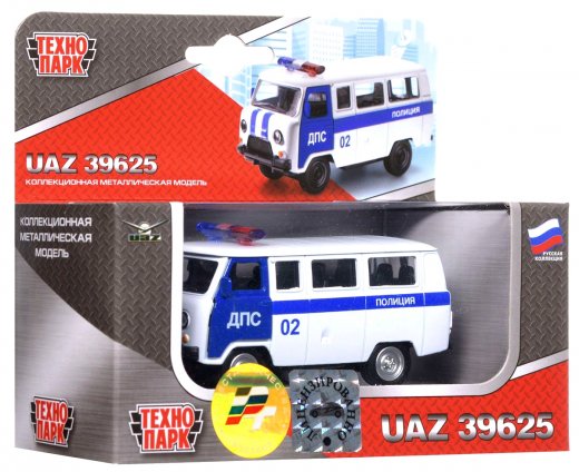 Модель автомобиля ТехноПарк УАЗ 39625 Полиция, выполненная из металла, пластика и резины, станет любимой игрушкой вашего малыша. Игрушка представляет собой модель полицейского автомобиля УАЗ 39625 в масштабе 1:50. Передние и боковая дверцы модели открываются, а прорезиненные колеса обеспечивают надежное сцепление с любой поверхностью пола.