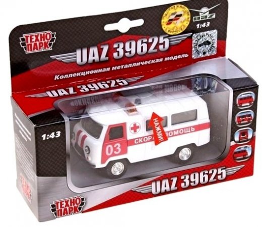 Машина Скорая помощь – это превосходный подарок для юного поклонника автомобилей. Коллекционная модель машины "Уаз Скорая помощь" из серии Технопарк обладает высокой реалистичностью за счет двигающихся элементов (открываются передние, боковые и задние двери), а также звуковых и световых эффектов. Автомобиль снабжен инерционным механизмом, что позволяет ему ускоряться вперед. Настоящая радость для ребенка, особенно если он неравнодушен к технике.