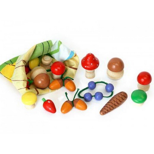 Устройте своему ребенку настоящий поход в лесную чащу. Найдите с ним грибы для жарки и грибы несъедобные, ягоды для пирога, желуди, оставшиеся после нашествия диких кабанов, шишку, которой позавтракала веселая белка. Это будет увлекательное и захватывающее путешествие в лесной мир! Набор также подойдет для "варки" и "жарки" на детских кухнях, "продажи", счета и сюжетных игр.