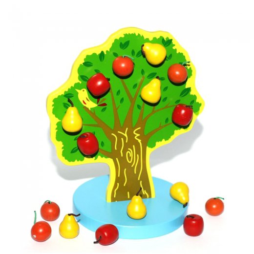 В комплекте вы найдете: вставку в виде дерева, основание, 16 миниатюрных фруктов (6 желтых груш, 5 красных яблок и 5 оранжевых апельсинов).
