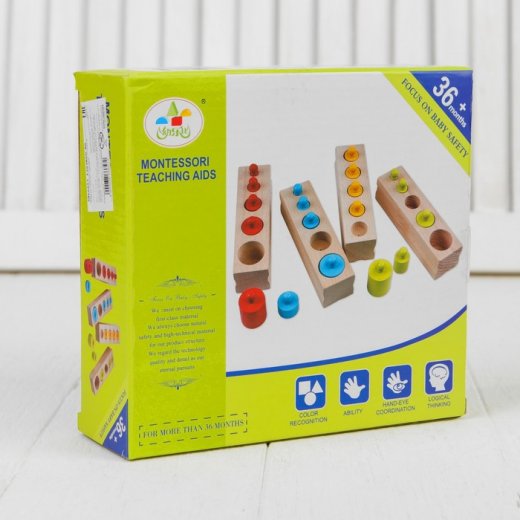 Развивающая игра "Набор цилиндров Больше-меньше" - это популярный материал для работы с детьми по методике Марии Монтессори в цвете. Это облегченный вариант игры для самых маленьких. Цвет помогает правильно сортировать гирьки по блокам и развивает цветовосприятие.
