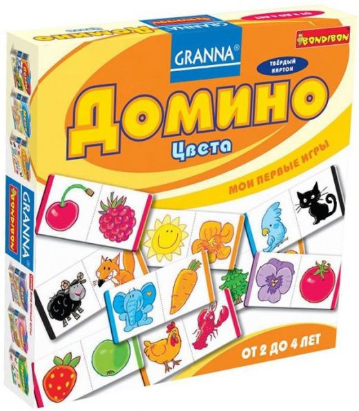 Настольная игра Домино цвета BONDIBON - очень полезная и интересная игра, необходимая каждому ребенку. Домино из плотного глянцевого картона с яркими картинками обучает малышей различать цвета. Учить крошку различать цвета нет особой необходимости – детки сделают это сами вскоре после рождения. Но уже с 3 лет, надо обучать детей определять и называть цвета осознано, ведь чем раньше ребенок этому научится, тем быстрее он будет развиваться. Игра дает возможность малышу понять, что конкретный цвет не обязательно может относиться к определенному предмету, что красной может быть не только любимая машина, но и кубики из набора, и мамины тапочки, и клубника. Предлагаем несколько вариантов игры с домино.