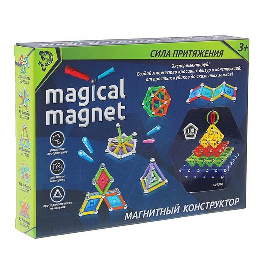 Магнитный конструктор "Магнитный конструктор 108 деталей" способствует развитию пространственного и логического мышления, воображения, мелкой моторики, фантазии, усидчивости.Рекомендуемый возраст: от 6 лет