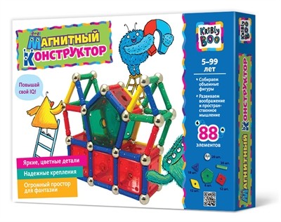 Состав набора: магнитные детали- 88 элементов. Размер упаковки: 30 x 20 x 4 см. Возраст: с 5 лет.