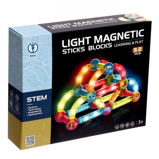 Купить Конструктор магнитный «Световые палочки», 52 детали в Новосибирске Вы можете в магазине развивающих и настольных игр "Игры Почемучек".