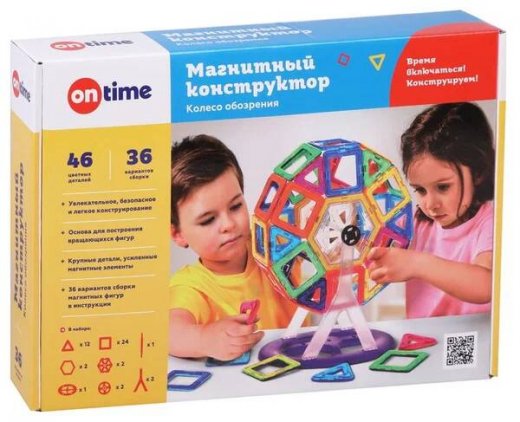 Что такое парк аттракционов? Конечно же, это масса эмоций и впечатлений, смех и безудержное веселье! С магнитным конструктором ТМ “ON TIME” можно построить этот парк своими руками. Несколько простых движений, и ребёнок соберёт самый популярный аттракцион — колесо обозрения. Основой модели послужит специальная деталь, предназначенная для построения вращающихся фигур. Используя магнитные детали, можно также собрать качели, карусели и другие фигуры. В комплекте прилагается подробная иллюстрированная инструкция с 36-ю вариантами сборки.